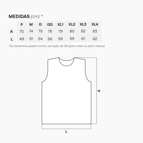 (0 avaliações) Regata Cavada - 550x780mm - Colorido Frente - Tamanho P - Costura