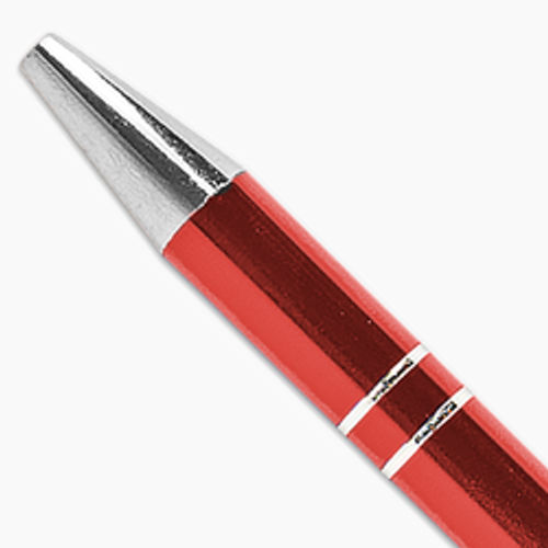É um tipo de caneta premium revestida de metal com 2 anéis, possui sistema de acionamento por clique, de apertar na parte superior para aparecer a ponta na parte inferior, é personalizada em gravação a laser (de um lado da caneta), com opção também sem a personalização. É uma caneta de tinta azul e com 5 sugestões de cores:
