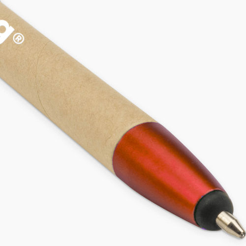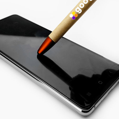 A Caneta Suécia tem uma característica distinta das demais canetas porque ela tem a parte inferior revestida de papelão e é uma caneta 4 em 1, já que além de escrever suavemente, possui um touch, um limpador de tela de celular, e ainda dá pra usar como suporte para o seu smartphone!
