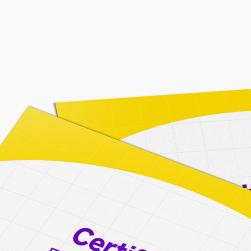 • Sem cobertura: sem aplicação de verniz, laminação ou qualquer tipo de cobertura extra no papel, que deixará o certificado até mais econômico.