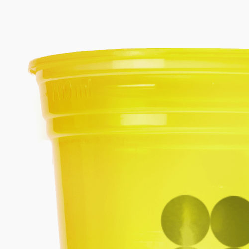Aqui na GIV você encontra copos descartáveis transparente em PP e copos descartáveis coloridos em PS. As cores disponíveis no nosso site são: PS amarelo neon, PS laranja neon, PS rosa neon, PS roxo neon e PS verde neon. Todos esses com personalização 1x1 (uma cor com escala de cinza nos dois lados do copo). Obs.: Não é personalização 360º.
