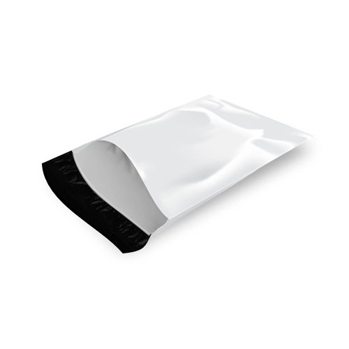 O material é bem específico, feito de Polietileno PEBD 0,10mm Branco, com modelo padrão de envelope