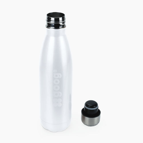 Ela tem isolamento em parede dupla, com tampa “fast click” com vedação a vácuo, que controla o fluxo da bebida ao se servir. O material em aço inoxidável não deixa a garrafa ficar enferrujada conforme o tempo de uso, além de ser super resistente, o que permite a reutilização ao invés do descarte como as garrafas pets tradicionais.