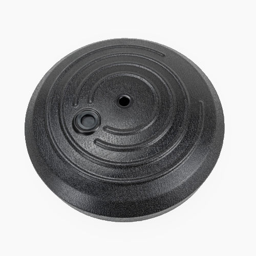 A base é feita de polietileno preto para ser preenchido com areia ou gesso e assim, garantir mais estabilidade no chão. (*Não recomendamos usar água). A haste é de metal com estrutura desmontável que não enferruja, inclusive, pode-se adquirir apenas a base ou a haste, ou o Kit de Base e Haste, e ainda dá pra comprar somente o tecido para apenas trocar a campanha e sua estratégia de comunicação.